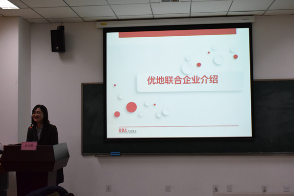 本次会议共邀请宝佳丰(国际)设计、易景道、优地联合、实创园林、金都园林等5家企业进行宣讲。会议伊始,每家企业分别介绍了基本情况、发展前景和2018年招聘计划等内容。