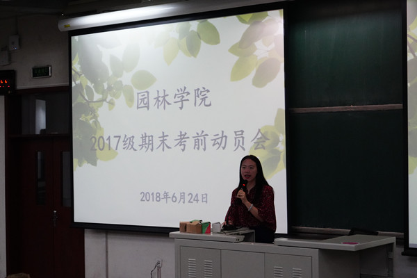 2018年6月24日18时,2017级期末考前动员会在教学楼B103召开。会议由辅导员武丽老师主持,2017级全体同学按时参加了会议。