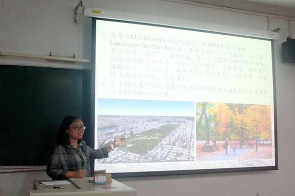 风景园林系主任张维妮耐心为新生们介绍此专业。风景园林综合利用科学和艺术手段营造人类美好的室外生活境域的一个行业和一门学科。风景园林是以“生物、生态学科”为主,并与其他非生物学科(例如土木、建筑、城市规划)、哲学、历史和文学艺术等学科相结合的一门综合学科。新生们认真专注,记录下来重点内容。