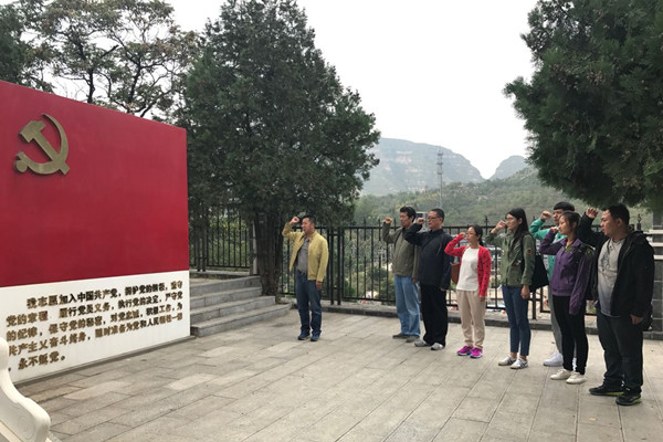 参观完纪念馆后,全体党员前往纪念馆旁的烈士陵园,在革命烈士纪念碑前,大家怀着无比崇敬的心情驻足瞻仰,默哀致敬,共同缅怀革命先烈。同时在场的全体党员在公司党总支副书记李国政老师的带领下,面向党旗,重温了入党誓词,表示决心在今后的学习、生活和工作中,继续学习和发扬革命先烈求真务实、艰苦奋斗的优良作风,进一步发挥党员的先锋模范作用,尽职尽责做好本职工作,全心全意为师生服务。