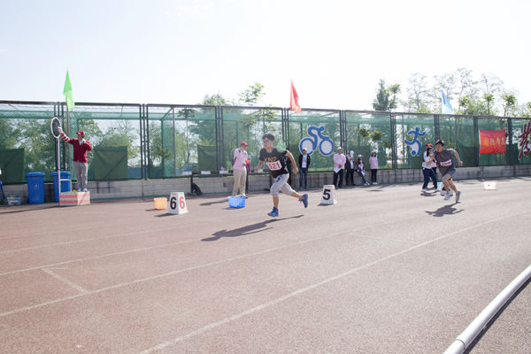 同学们在赛场上奋力拼搏,教职工们也不甘示弱。青年组的抱实心球跑、4×100米接力,老年组的定点投篮、沙包,平时教职工们在讲台上没机会展现的,都在今天的运动场上得到了淋漓尽致的体现。