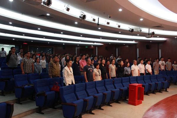 大会开始,全体起立奏唱国歌。
