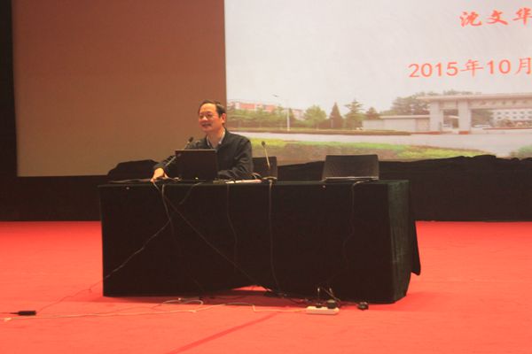接着,沈文华教授为同学们带来了《爱国、敬业—争做新时期老员工的学习模范》的精彩演讲。沈教授首先将社会主义核心价值观分为三个层面,并通过最后一个层面引出了爱国与敬业这两大主讲核心主题。他通过古往今来的人物,经典传承的典故等多方面为同学们讲解何谓爱国。“国,口中之玉也,国人之珍宝,不容他人侵食”,语言绝妙,字字珠玑更是引发了同学们党课学习的浓厚兴趣。其后快递哥窦立国,浙江工商局长郑宇民两个视频的播放又是掀起了同学们思考学习的新高潮,引出了敬业观点:小事做起即时敬业。沈教授提倡大家逐字逐句地学习党章,并提出学习不能只追求记忆,要深层次学习,以收获为目的。最后,他以《钢铁是怎样炼成的》中一段名言圆满地结束了他的讲说。