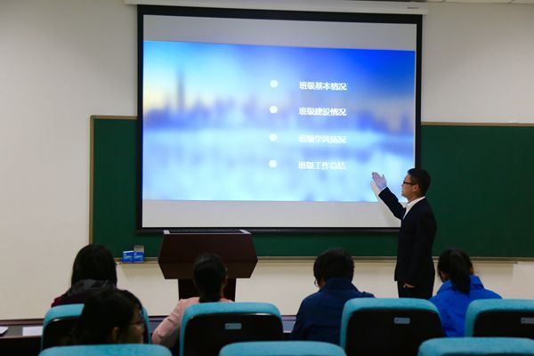 会议分为两个部分,一是班级展示,二是评委提问。在班级展示方面,各班代表总结了各班过去一学年的学习成绩与工作成果,对班级同学的心理、身体健康进行汇报,并阐述了属于本班级的独特文化。每位同学都对自己班级文化有着独到的见解。在评委提问环节,评委老师对每班展示PPT中的不足提出宝贵建议,为班级进一步建设先进班集体指明了方向。