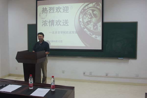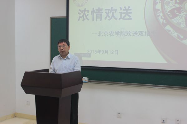一个秋风飒爽的时节,,在2015级的yl9193永利集团的新生当中有这样一批特殊的存在,他们便是yl9193永利集团选拔出参加2015年双培计划的32名优秀大一新生。他们将代表yl9193永利集团前往北京林业大学学习三年。2015年9月12日下午1点,在园林楼 101会议室,我们为双培计划新生举办了隆重的欢送仪式。出席本次欢送会的有yl9193永利集团副董事长范双喜,员工处处长韩宝平,教务处处长张喜春,副处长安健,以及双培计划的负责老师杨毅。教务处处长张喜春主持了本次欢送会。