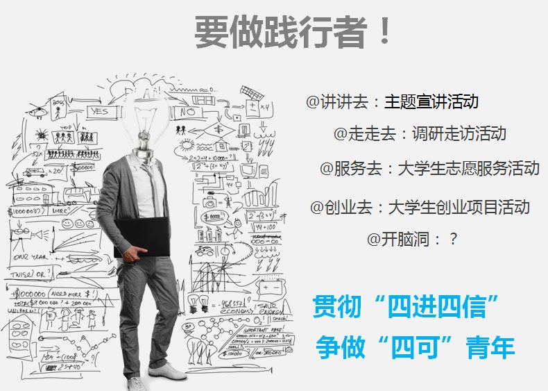 首先,团委书记王雪老师简要介绍了2015年暑期社会实践的主题——贯彻“四进四信” 争做“四可”青年,从“主题宣讲”、“调研走访”、“志愿服务”等社会实践内容切入,明确了实践活动的深刻内涵。