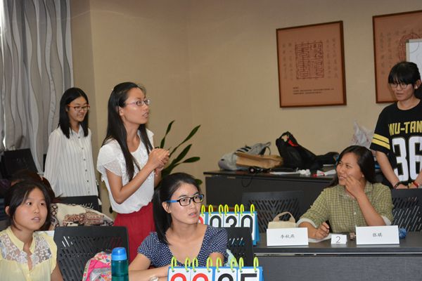 之后,主持人揭晓了最终比赛结果:潘羽洁,李艳捷两位同学获一等奖;孙润坤,崔潆心,汪傲琪,白璐遥四位同学获得了二等奖;邹晓鑫,刘鹏丽,李秋燕,罗韵,夏蔚玲,刘欣怡等六位同学获得了三等奖;薛喜娟,杜玥霞两位同学获得了优秀奖。比赛结果不仅显示出了选手们的实力,也使选手和观众们在比赛过程中获得了欢声笑语。