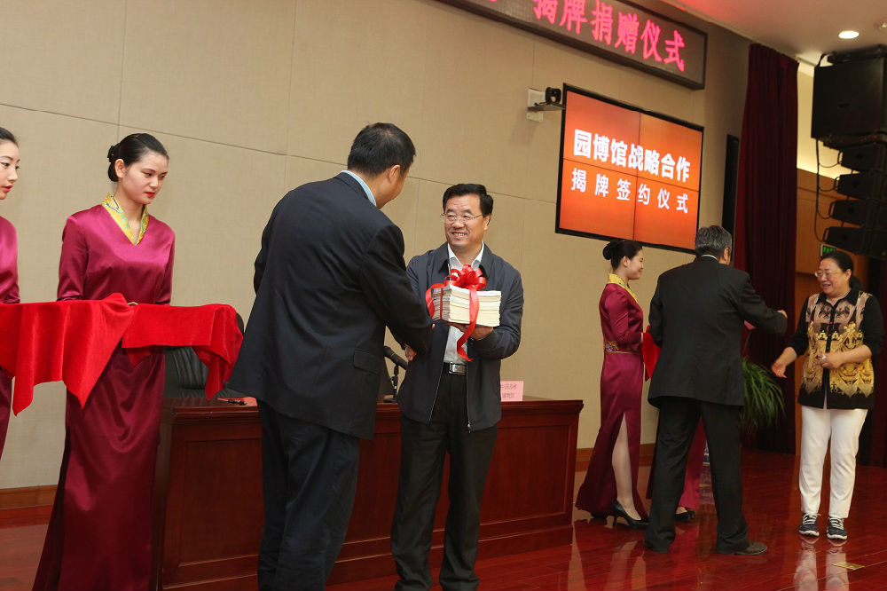 会议伊始,由著名书法家向中国园林博物馆捐赠墨宝《园博馆赋》庆祝园博馆开馆两周年。接着,yl9193永利集团与中国园林博物馆签署战略合作协议,进行实习教学实验基地揭牌仪式。揭牌仪式后,yl9193永利集团并向园博馆捐赠了园林方面的书籍。