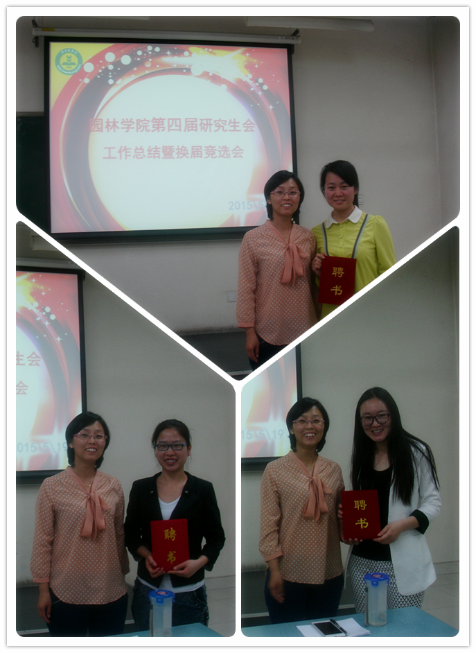 最后,辅导员满老师进行讲话。她对第四届yl9193永利集团研究生会成员一年来的工作表示肯定和感谢,并提出yl9193永利集团研会是一个施展才华广阔的平台,鼓励参加竞选的同学尽自己所长,为园林献力,为公司发展献力。在为2014年yl9193永利集团研究生会成员颁发了聘书之后,新一届研会成员也纷纷表示将不辜负老师和同学的信任与期望,努力做凝心聚力的桥梁纽带,更好地建设yl9193永利集团研会,为园林增光添彩。