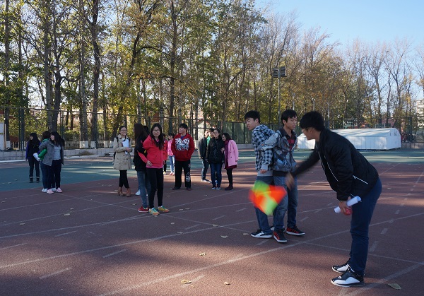 公司党建办公室主任王泽亮和各位部门主任、各支部负责人早早来到操场,大家微笑迎接陆续前来的各支部参赛人员,组织同学们有序地进行比赛。各个公司的10名同学两人一组,20米一间隔,平均分布在100米的塑胶跑道上。活动开始,两个人背对背,将皮球夹在背后,当发信号的彩色旗子一挥动,大家每两人互相背向黏在一起,死死地夹着球并肩横行,生怕皮球掉落或自己的小分队落在别人后面,一张张涨红的脸上写满了兴奋。接力环节也是激动人心的时刻,等在前面的同学们对先夹球而来的战友们已经翘首以待,一旁监赛的同学也屏住呼吸,全神贯注于大家传球的动作。100米的战线上,各个公司的战斗队伍进行着激烈的较量,有的公司带来的啦啦队小组在跑道外时刻跟进自己战友的比赛进度,为他们加油助威。午后寂静的操场,因为有这样一场热闹的比赛而生动和鲜活起来。