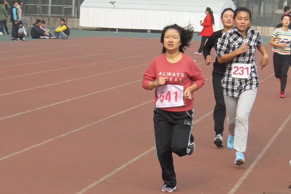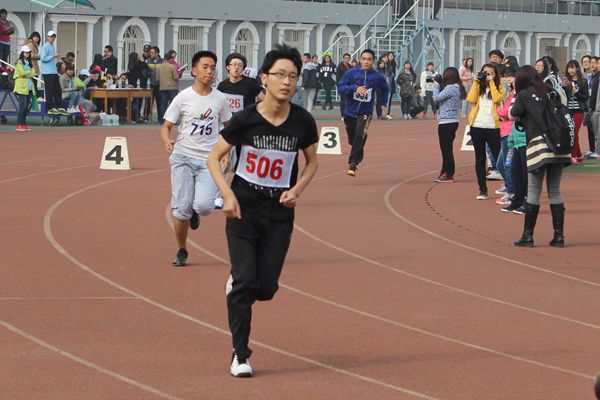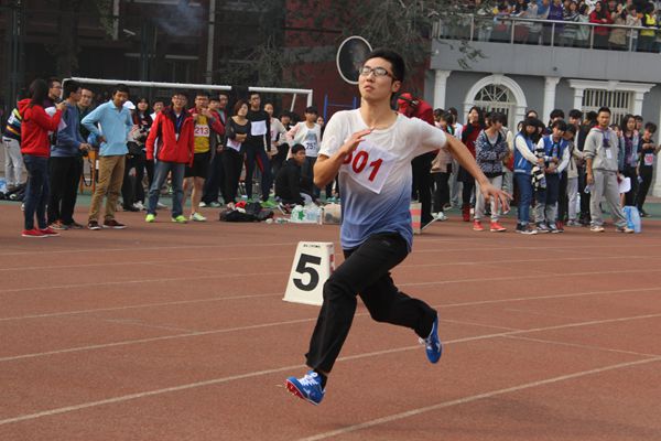 男子5000米长跑是一项既考验体力也考验耐力的比赛,然而身为未来国家栋梁的他们毫不畏惧、敢于挑战。跑道上,1号运动员隋静轩在跑完第一圈的时候落在了队伍后半部分,大家不尽有些为他担心。脚下的步子不曾停歇,他微笑地看向大家说:“我不减速,我不减速”!终于,他不负所望,坚持着跑完了全程。这,就是胜利者!