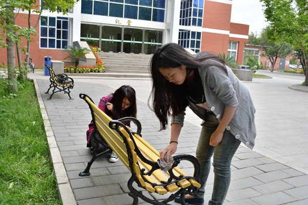 虽然天气有些阴沉但是并没有影响同学们对此次活动的热情,所有同学12点半准时在礼堂前集合完毕。此次活动以小组为单位进行,共分为三个小组,分别负责打扫教室卫生、清理广告栏和礼堂周围的长椅。在各小组组长的带领下,同学们携带着自备的抹布和其他清理工具,来到活动区域,同学们热情主动,团结协作,认真清理校园环境。
