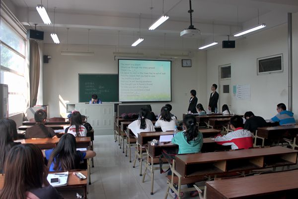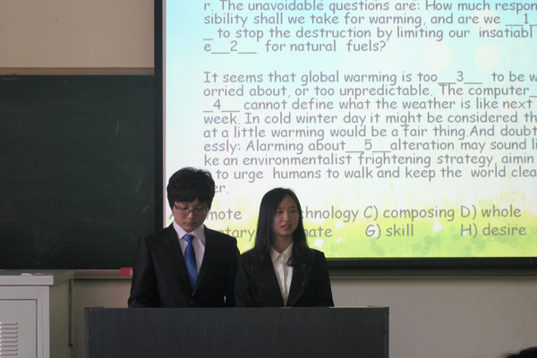 本次比赛包括必答环节、综合环节和选答环节。主持人宣布比赛开始,宣读并强调比赛规则。比赛过程中同学们积极参与,认真作答,尤其是最后一项你猜我答环节,生动有趣,更加体现了同学们的聪明才智,彼此之间默契的配合以及庞大的单词量。主持人公正客观评判各小组成绩,负责人准确记录。比赛期间,yl9193永利集团员工会副主席丁榕在各个教室之间进行了观摩与监督。比赛结束,负责人统计最后分数,最终角逐出优秀的同学参加百词竞赛的决赛。