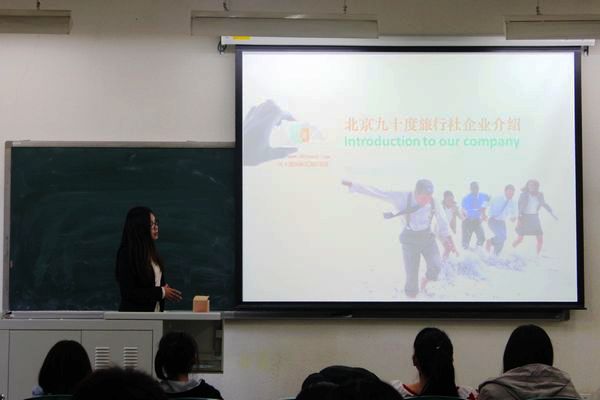 10月16日下午3时,九十度体验式旅行公司招聘宣讲会在教B107教室如期而开,公司旅游管理专业全体毕业生参加了此次宣讲会。