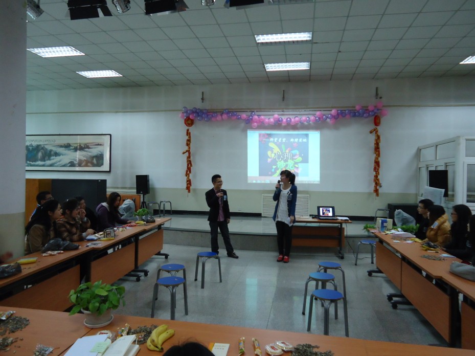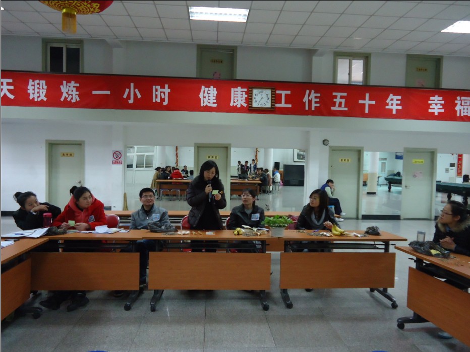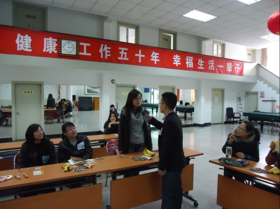 活动之初,大家通过观看随机采访的视频——《你对现状满意吗》,进行了现场讨论,老师和同学们纷纷结合自己的实际情况表达了各自的观点。随后,大家又踊跃参与了《青蛙跳水》这一智力游戏,在现场欢悦的氛围里放松了心情。接着在《星空与实地》活动中,大家通过所发放的卡片纸,书写出了自己的“中国梦”,同时表达出了自己想对身边的人所说的话语,或是感人的情话或是诚恳的道歉或是深深的祝福。在主持人的引导下,每人抽取了由他人写好的卡片并逐一深情的读出来,共同分享了真挚情感的表达,并围绕此话题展开了讨论。最后,大家在齐唱《相亲相爱一家人》的歌曲中愉快地结束了本次活动。