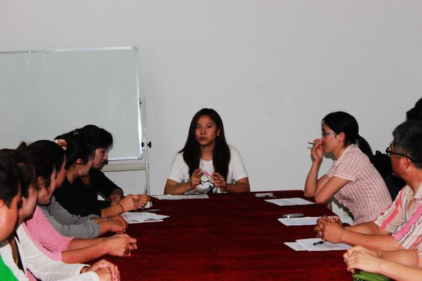 会议期间,身为班长的张斯琪率先代表全班同学对新疆同学的到来表示了欢迎并称在新同学今后的学习生活中她会积极给予帮助。之后9名新疆同学进行了自我介绍并与班级中“一对一”帮助他们汉语学习的同学进行了相互认识。