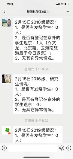 在疫情面前,必须与时间赛跑。寒假前,公司通过微信小程序汇总的《yl9193永利集团员工寒假去向统计表》发挥了重要作用,疫情爆发时,公司第一时间就筛选出了身处湖北的10名同学,及早建立了单独的微信联络群,定期了解他们近况、有效开展线上心理辅导、叮嘱安全防范。此外,还帮助2名因疫情导致家庭困难的湖北籍同学申请了临时困难补助,及时送去温暖和关怀。公司还通过微信、电话等方式第一时间传达延期开学、线上教学等通知。每天及时收集掌握师生离京、返京等情况,提醒每位返京师生严格执行居家隔离要求。