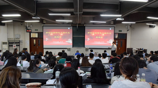 杨书记从“进入新时代—中国外交取得新成就、引领新征程—习近平外交思想成为中国外交新指南、应对大变局—中国外交开创新局面”三个方面为同学们进行了深刻阐述。