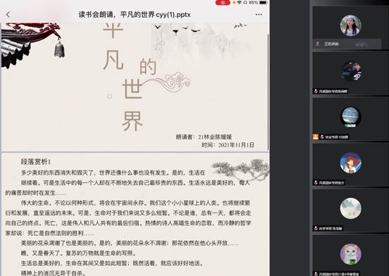 阅读分享结束后,进入到本次活动的第二阶段,由同学们带来好书原文精彩片段诵读。