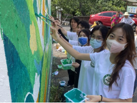 清芒谷团队师生与墙绘合影