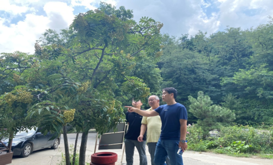 7月27日,团队在中心种质创新所所长鲁仪增正高级工程师的陪同下,到中心药乡林场和枣园保育库进行调研考察,团队详细了解了山东省药用植物国家林木种质资源库、暖温带珍稀树种国家林木种质资源库、国家林业和草原长期科研基地的运行管理情况,并结合调研中存在的问题和农民需求,为中心花楸属、梓树属和鹅掌楸属等种质资源的引种驯化、异地保存及其创新利用等方面提出了合理化建议,对林木新品种申报进行了系统性指导。
