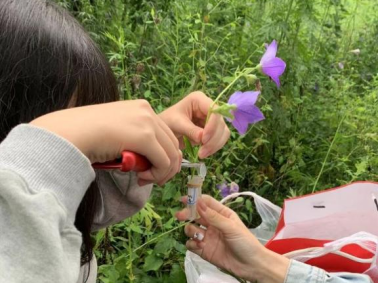 经过九曲回折的山路,同学们入住了“藏”在大山里的黄土梁村,即使仅有两天短暂的时光,但他们也深深的感受到了浓厚的风土人情、呼吸了沁人心脾的空气和品饮了山间回味甘甜的泉水。两天时间,同学们利用光合仪、叶室仪、叶绿素测量仪等设备顺利完成了植物的光合指标变化、光合曲线测量、样本采集和桔梗叶片叶绿素的测量等任务。