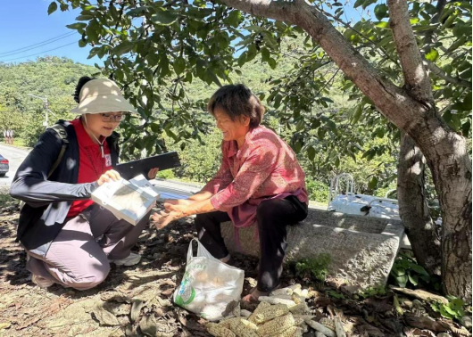在充分沟通的基础上,实践队创新采用“双线并行、分组协作”的模式展开调研。第一小组由田晔林老师与李金苹老师共同带队,以田老师为主指导,聚焦湖门村山径步道沿线的原生态植物研究。队员们系统性地开展植物识别、标本采集与生态数据记录工作,仔细观察不同植物的形态特征、生长环境,认真完成采样、拍照、标签记录等一系列专业流程。田老师在现场教学中拓展讲解了各类植物的生态价值与经济潜力,帮助员工跳出传统园艺视角,更全面地理解植物资源在乡村振兴中的重要作用。