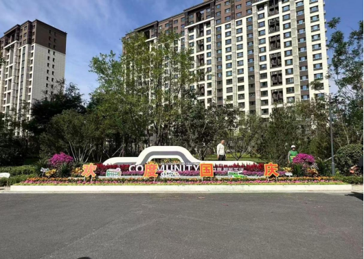 午后,活动转场至领秀慧谷A区。在师生的统筹规划下,居民们分工协作,搬运、摆花、整理一气呵成。暖阳下,红、橙、绿三色植物错落有致,与“欢度国庆”主题元素相映成趣,吸引不少路过居民驻足参与。“能亲手装点社区特别自豪,这才是实实在在的节日氛围。”一位老年居民的话道出了大家的心声。