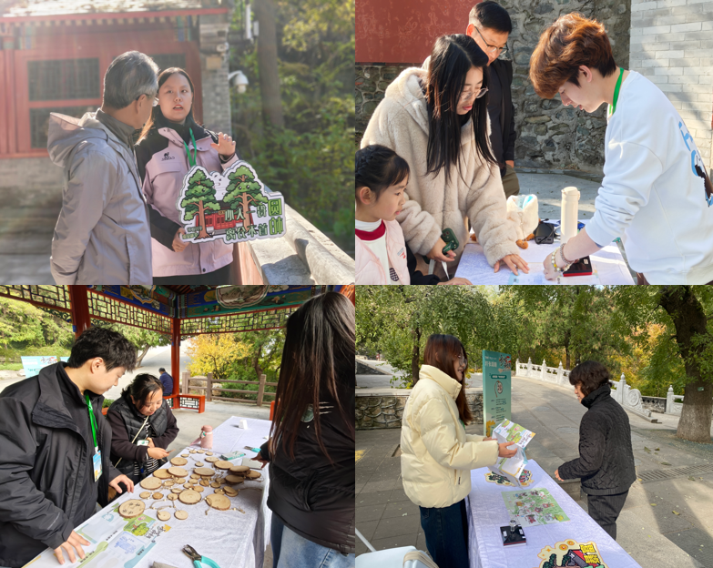 服务期间,志愿者们以饱满的热情投入服务。公园外,引导组志愿者耐心指引游客前往主会场,及时解答路线咨询;主会场展台前,志愿者耐心细致的介绍古树打卡游线规则,完成打卡地图发放、加盖印章及奖品兑换等工作;8个打卡点位上,志愿者们一边生动讲述古银杏、古油松等古树的历史故事与保护成果,一边为完成任务的游客们盖上专属印章;许愿处与DIY体验区,志愿者们有序核验打卡册、分发许愿牌、协助游客进行年轮纪念盘的写字与漂漆创作等,保障活动秩序。在志愿服务期间,志愿者们累计服务游客数千余人次,用热情的服务获得了游客与主办方的一致好评,成为古树名木保护科普宣传周上一道靓丽的青春风景线。