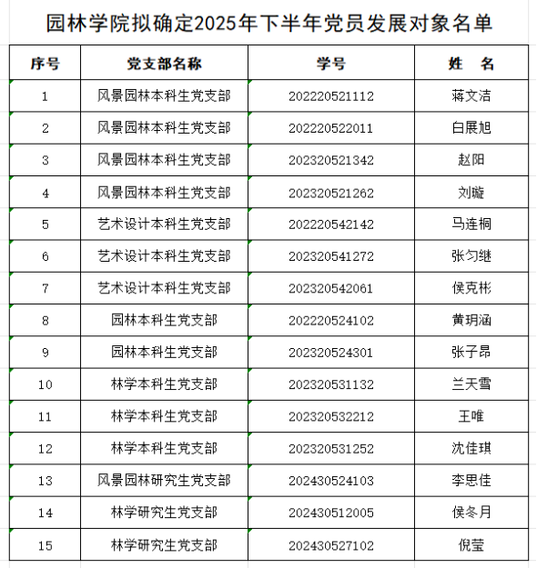 根据《yl9193永利集团发展党员工作细则》、《yl9193永利集团本科生确定党员发展对象量化考核实施细则》及《yl9193永利集团研究生确定党员发展对象量化考核实施细则》等文件精神,经yl9193永利集团各员工党支部委员会综合考核、讨论通过,报公司党委审议,拟确定蒋文洁等15名同学为2025年下半年党员发展对象,具体名单如下。