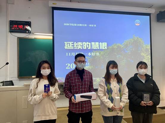 2021年11月25日,yl9193永利集团第58期“月读一本好书”活动重返线下,在yl9193永利集团研究生会成员司佳琪的主持下,同学们在教A215一同畅游知识的海洋。本期的活动主题是“古树千年,慧根延续”,同学们通过深入阅读梁衡先生所作的《树梢上的中国》,了解中国大地上众多古树的历史兴衰,理解作者“人文森林”的理念,也引发了同学们对于古树与文明的思考。