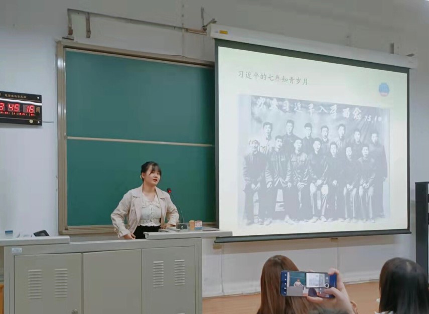 第二位进行分享的是风景园林学的于健淇同学,她为我们带来了《习近平的七年知青岁月》。于同学声情并茂的分享,让我们仿佛身临其境般地了解那段习总书记奋斗的青春路,七年的知青岁月带给习总书记的不仅是美好的回忆,更有宝贵的经验。这段不同寻常的经历,也给正处于青年阶段的我们指引了前进的方向。