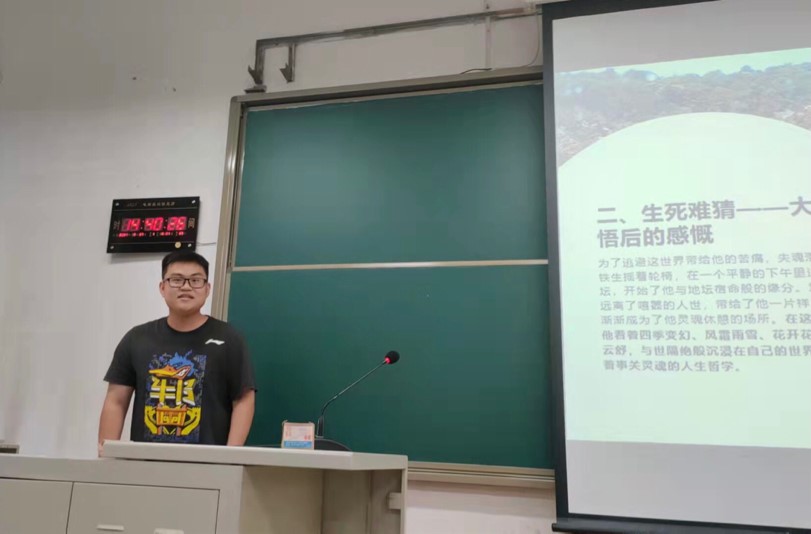 第四位进行分享的是林学的孙旭虹同学,她为我们分享了著作《平凡的世界》。这本书是中国作家路遥创作的一部全景式地表现中国当代城乡社会生活的长篇小说。孙同学以几位主角的形象入手,带我们一起走进“平凡的世界”,让常常被王者震撼、为英雄掩泪的我们,找到平凡人生的伟大意义。