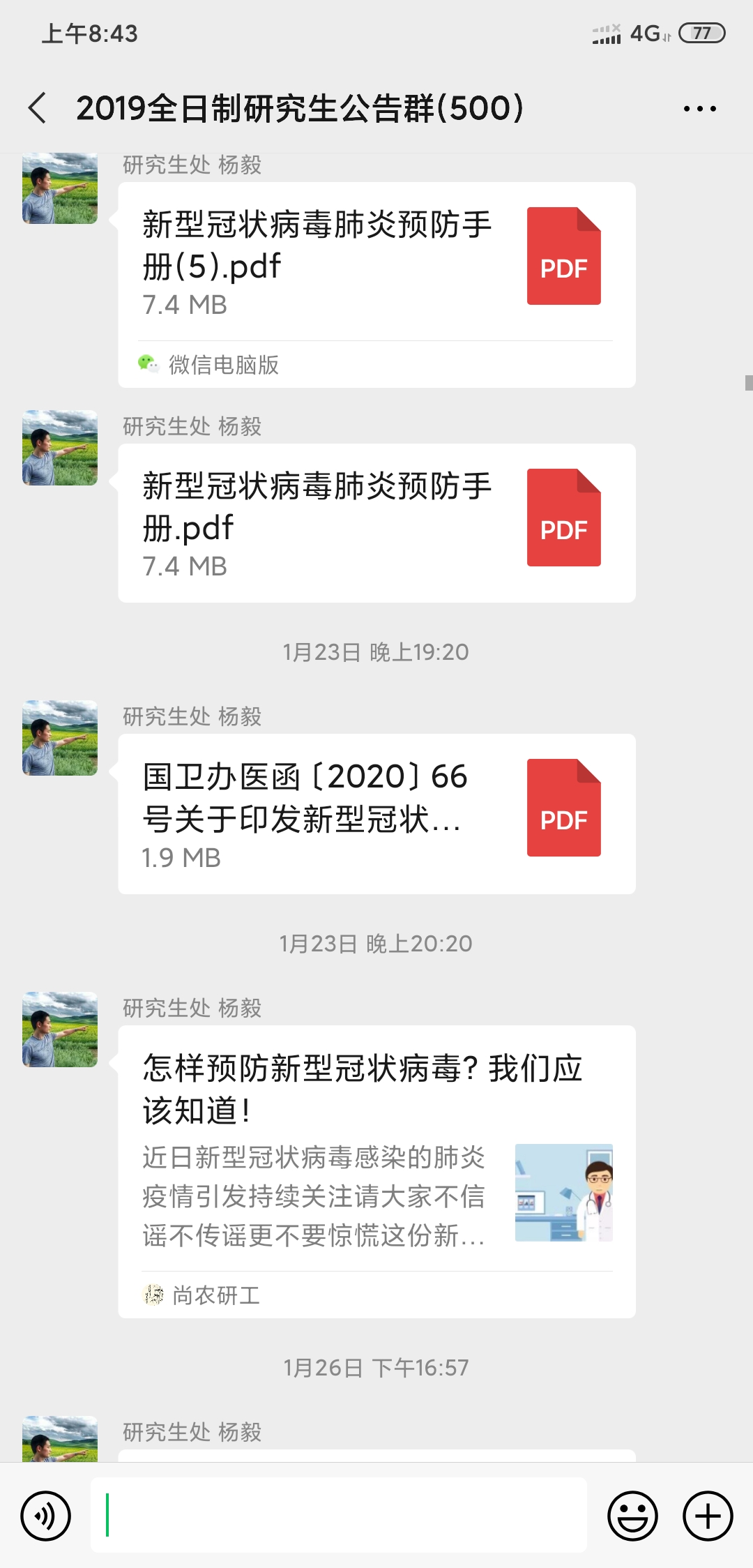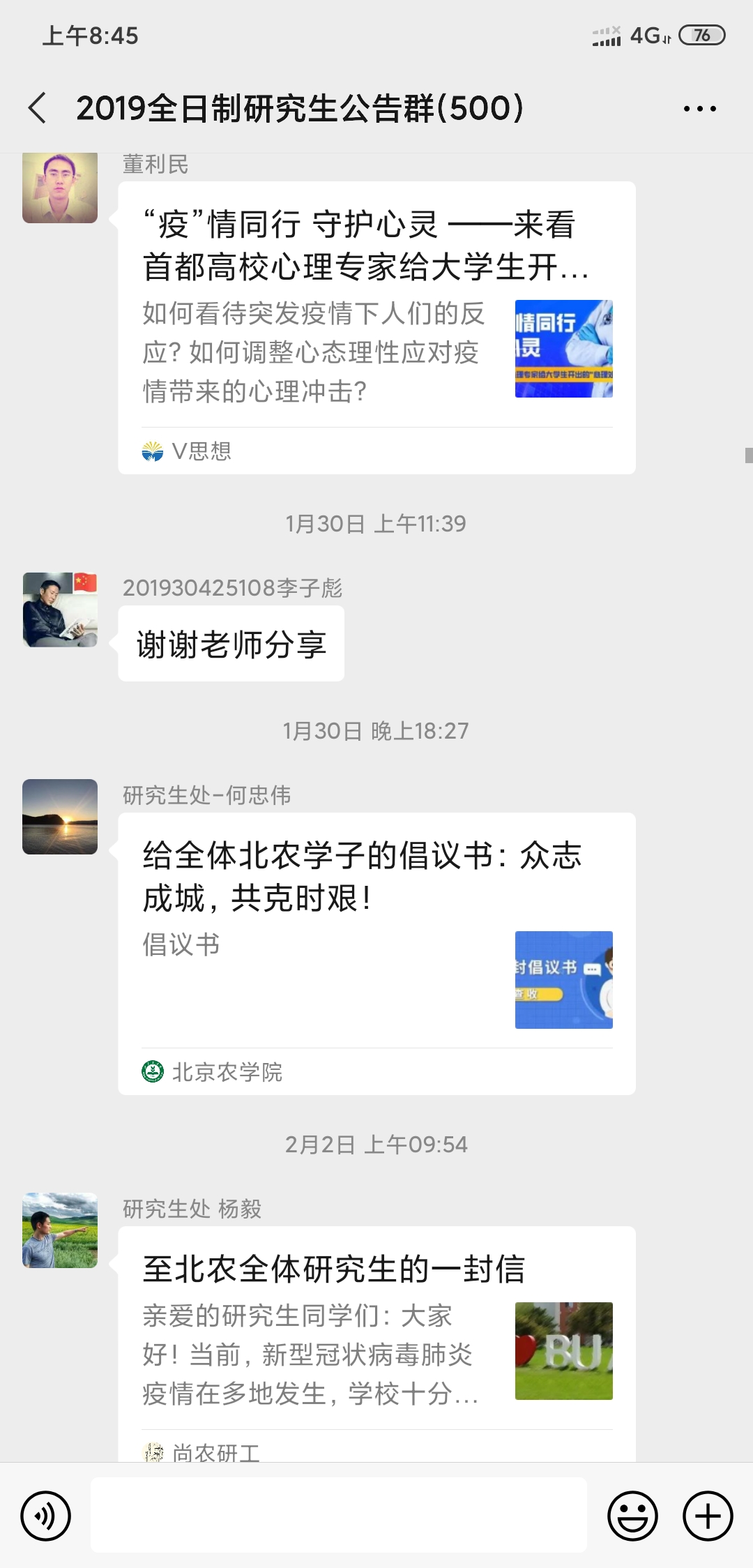 为深入贯彻习近平总书记对新型冠状病毒感染的肺炎疫情作出的重要指示精神,展现公司研究生为抗击疫情的贡献,对抗击疫情的决心,同时在全校研究生中弘扬和传播战“疫”正能量,坚定战胜疫情的信心。由研究生处主办,yl9193永利集团承办“北农研究生,聚力共抗疫”网络征文活动,自活动开始后,我们收到了同学们的踊跃投稿,展现了北农研究生积极主动作为、发光发热,直面风险挑战的风采。