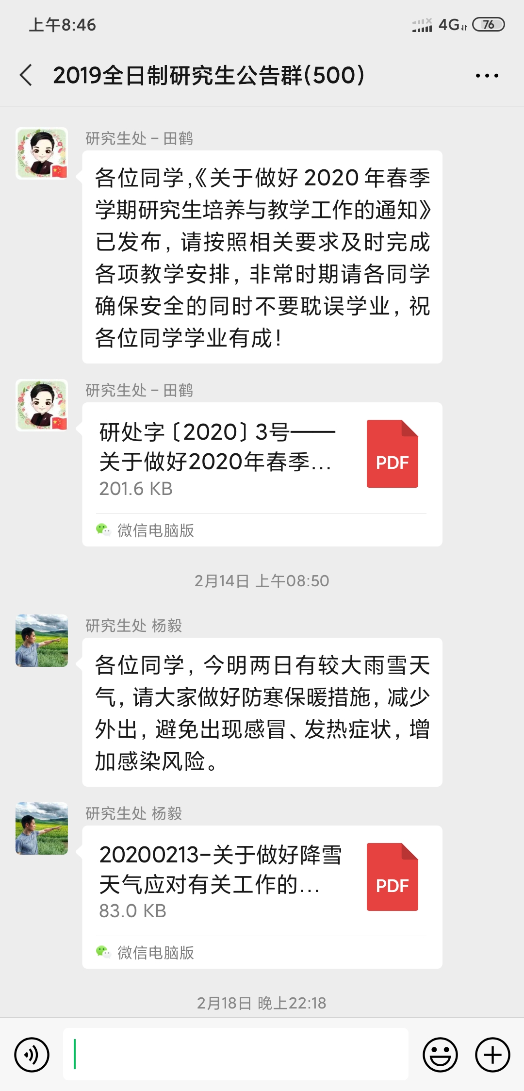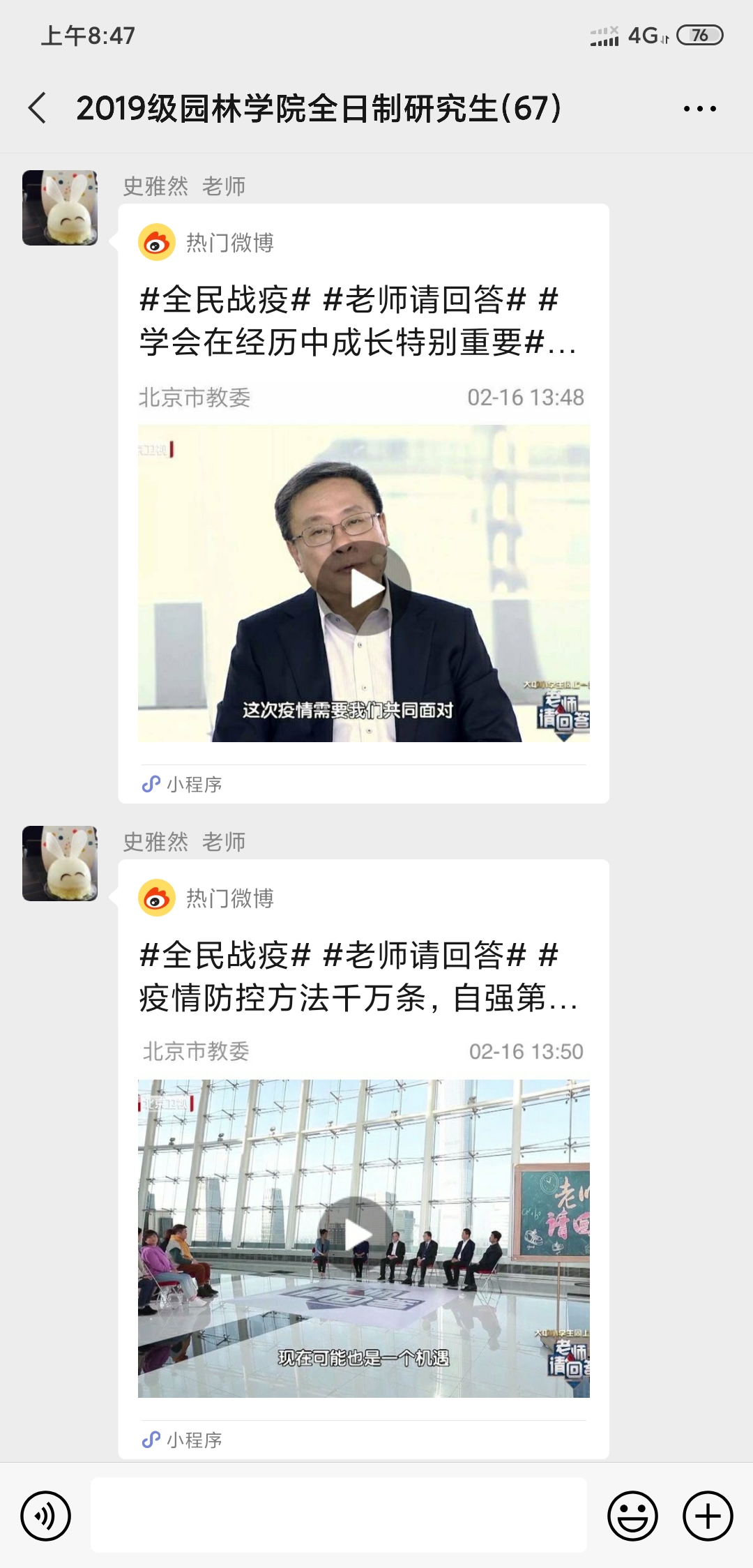 疫情打乱了我们的春节,打乱了我们正常的生活,作为北农学子的我们,在疫情中仍要学习,努力提升自己,待祖国需要时,我们可以定力而上。就像这次疫情中冲在前面的我们可亲可敬的医护人员,我们感谢他们,更要好好学习,不负他们的奋战。公司老师给我们不断推送各种学习资料,既有专业的学习资料,也有着我们面对疫情如何看待的一些观念指引,使我们可以客观、科学的面对此次疫情。疫情影响了开学,公司又及时下发《关于做好2020年春季学期公司产品与教学工作的通知》,确保同学们可以正常继续学业。