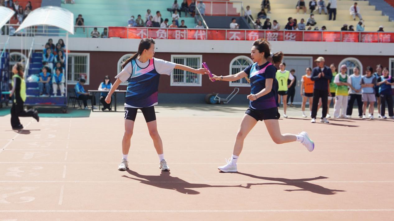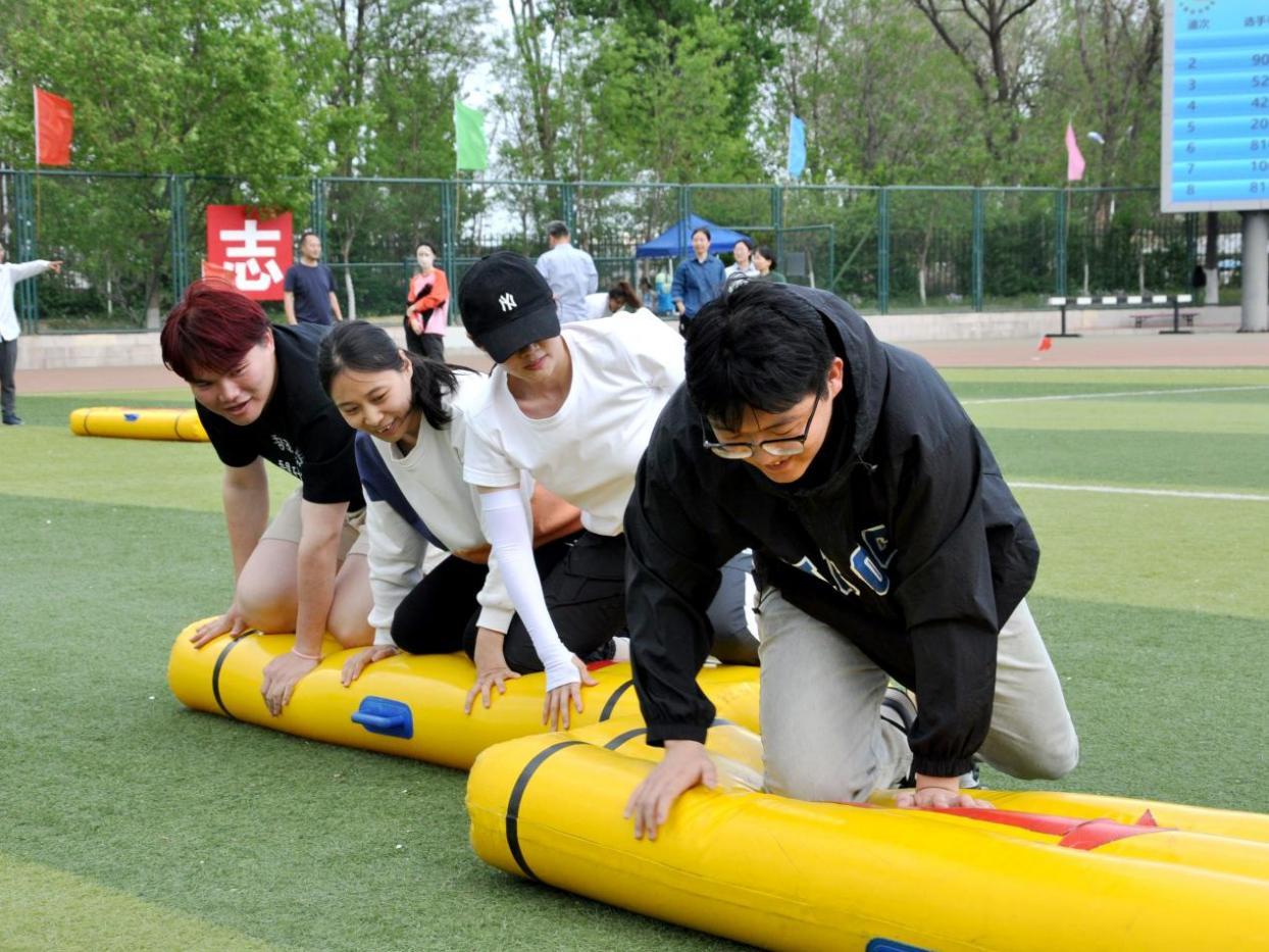 趣味运动会上设立了许多欢乐有趣的项目,师生们团结一心,默契无间,脸上洋溢着美好的笑容。